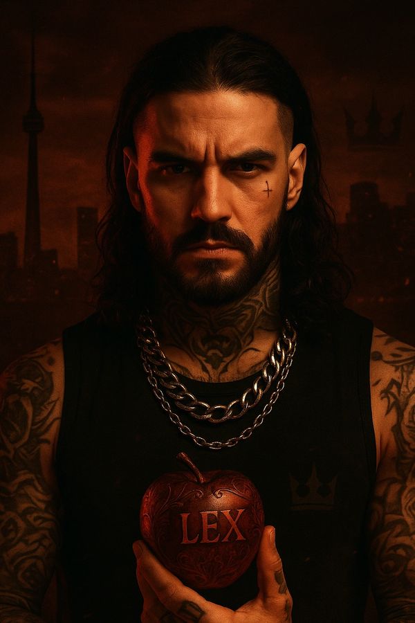 Lex grew up immersed in the pulse of the city—Queen Street West, Parkdale, and Roncesvalles shaping his worldview and his grind. Instead of following trends, he carved his own lane—turning pain into poetry, lust into liberation, and chaos into craft. His art blurs the line between the sacred and the profane, mixing hip-hop, rock, gothic aesthetics, and dark eroticism into a single visceral experience. Every track, every design, every symbol of the black crown reflects his core philosophy: power through authenticity, freedom through creation, and beauty through discipline.